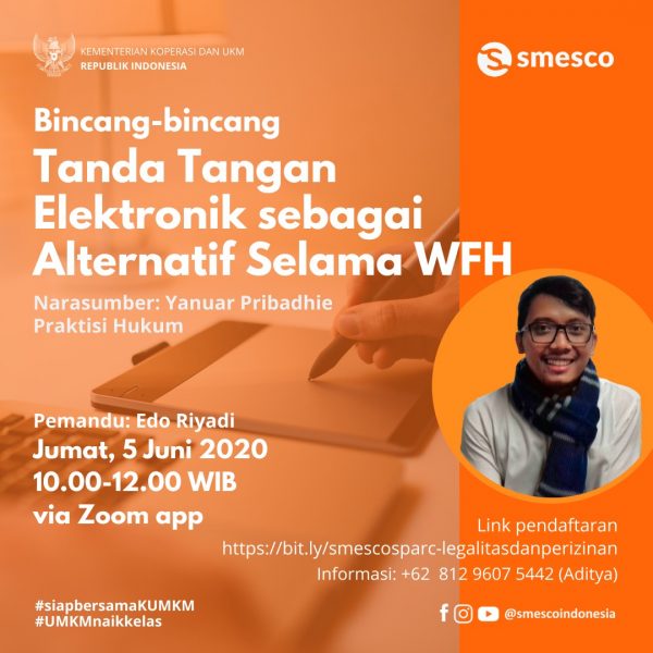 Tanda Tangan Elektronik sebagai Alternatif selama WFH adminsmesco June 3, 2020 Video 9 Bincang-bincang dengan Yanuar Pribadie, Praktisi Hukum Jumat, 5 Juni 2020 10:00 – 12:00 Pemandu: Edo Riyadi Di era digital saat ini, korespondensi… Read More