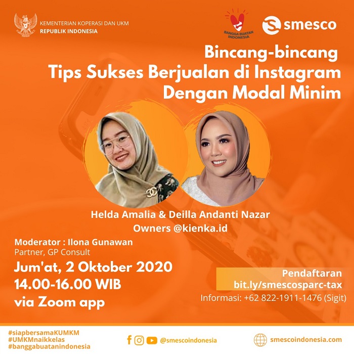 Tips Sukses Berjualan di Instagram Dengan Modal Minim adminsmesco September 29, 2020 News & Event, Video 14 Bincang-bincang dengan Helda Amalia & Deilla Andanti Nazar, Owners @kienka.id Moderator: Ilona Gunawan, Partner, GP Consult ? Jumat, 2 Oktober 2020 ?… Read More